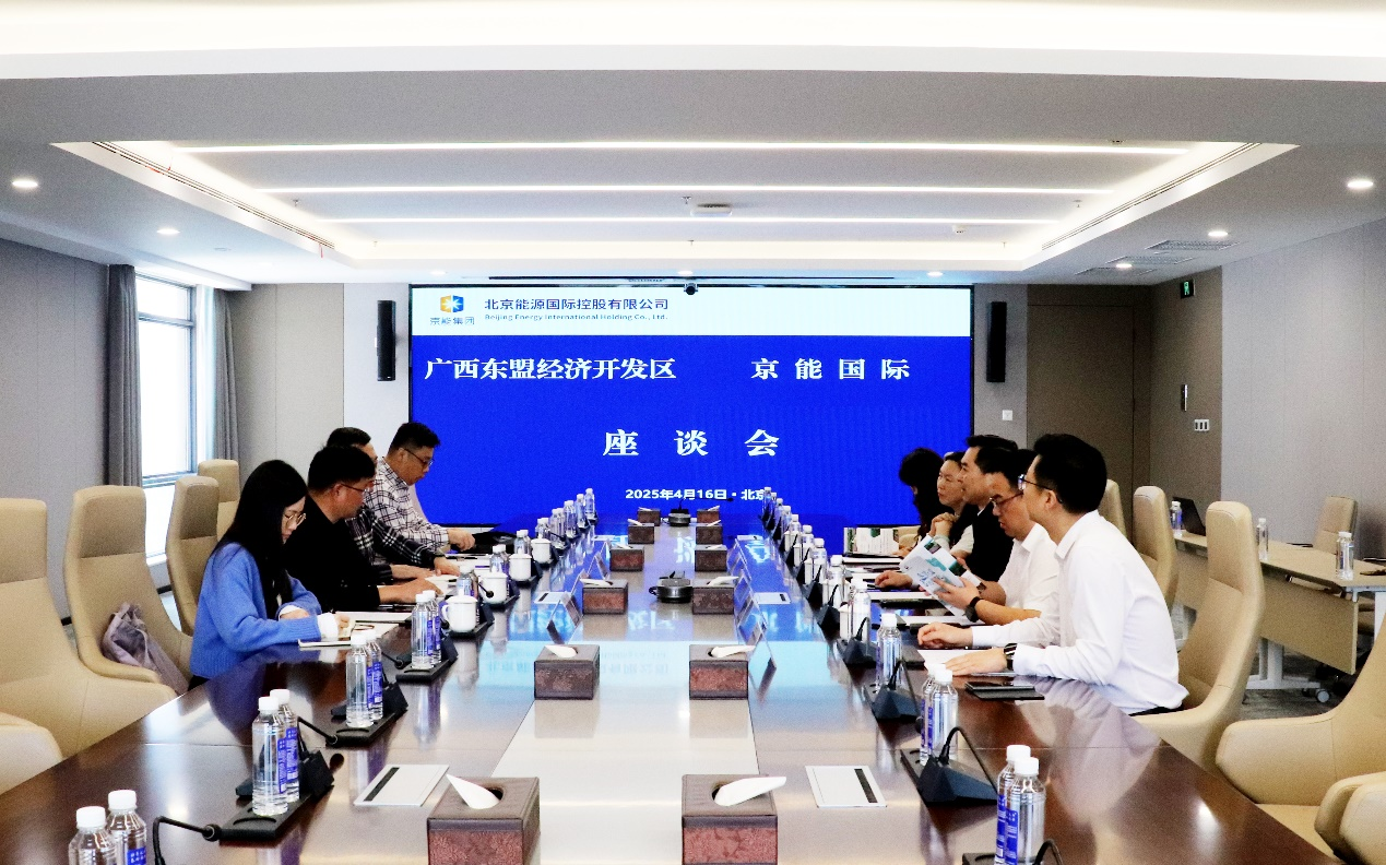 On April 16, Liu Guoxi, Party Secretary and Chairman of the Trade Union of Beijing Energy International, met in Beijing with Wei Haibo, Member of the Party Working Committee and Deputy Director of the Administrative Committee of the Guangxi-ASEAN Economic and Technological Development Zone (“the Zone”). The two sides held discussions on deepening cooperation in the field of new energy.
