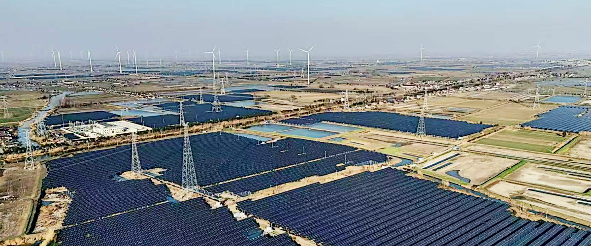 京能国际江苏扬州甘垛光伏电站位于江苏省扬州市高邮市甘垛镇。实际用地面积8479.25亩,项目备案容量460兆瓦,实际装机容量611兆瓦。年发电量约7.5亿千瓦时,相当于每年可节约标准煤约9.2万吨。项目规划与建设过程中贯彻了集约用地理念,通过高支架布置及组件合理净高设置,实现了“板上发电、板下养殖”的渔光互补模式,充分体现了“光伏+”在渔业、生态等领域的融合发展理念。项目正以这份“水光共舞”的绿色答卷,书写着新时代能源转型与乡村振兴的和谐篇章,为长三角地区绿色发展注入持久动能。