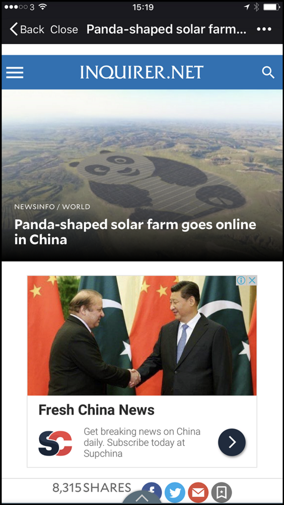 Inquirer : 熊猫形状太阳能电站在中国落成