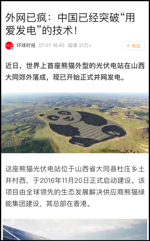 世界经济论坛(World Economic Forum):中国建成大熊猫形状发电站
