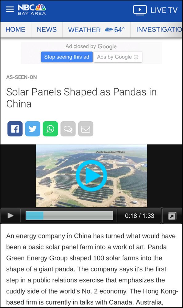 美国全国广播(NBC):中国的大熊猫形状发电站