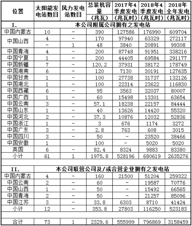 (中国香港,2019年1月15日)熊猫绿色能源集团有限公司(00686.HK,“熊猫绿能”)发布公告,集团及其联营公司或合营企业实益拥有的清洁能源发电站2018年全年累计发电约31.6亿度,同比大增49.9%,超额完成全年发电任务,实现了生产效益和经济效益“双突破”,创历史新高。