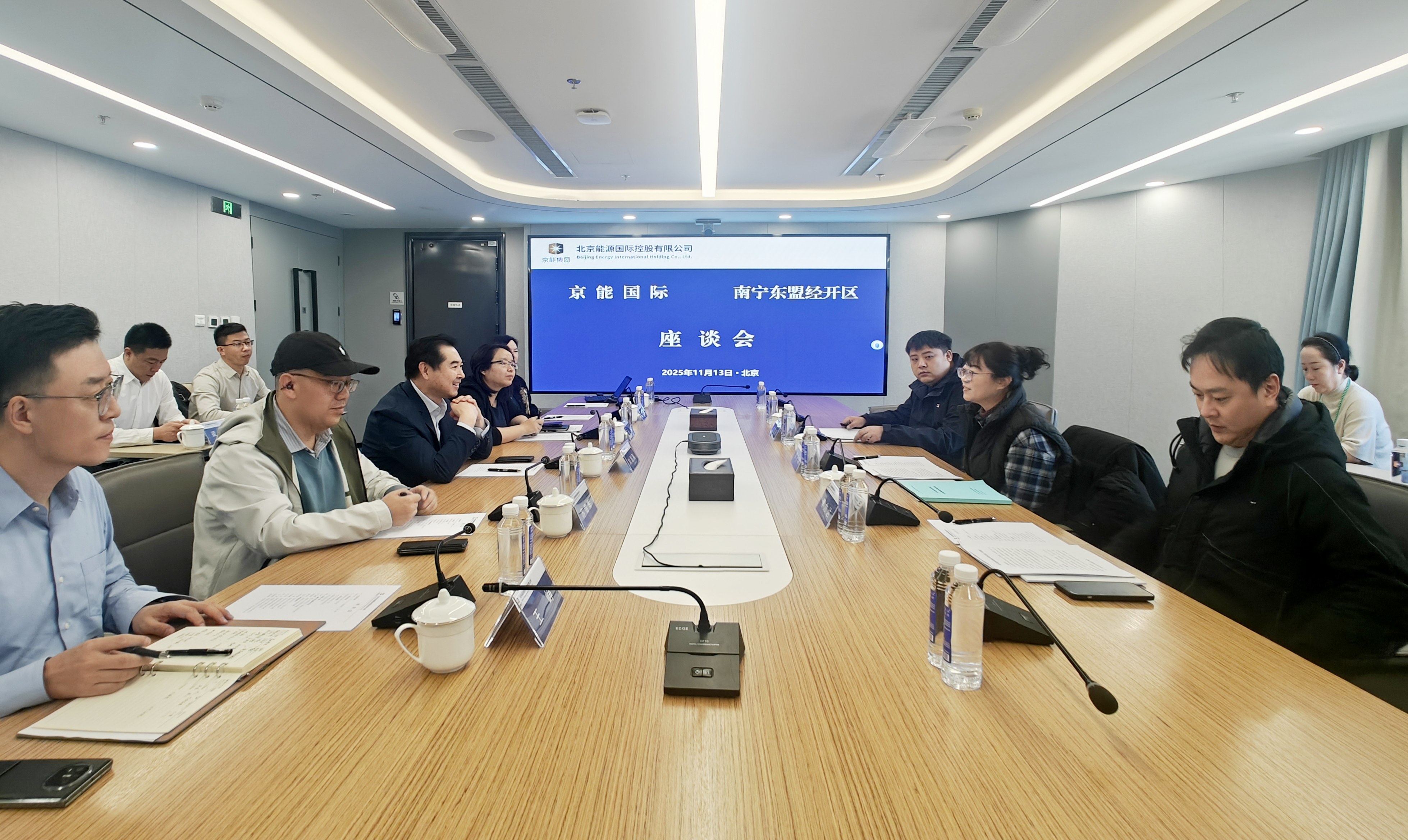 11月13日,北京能源国际控股有限公司党委书记、工会主席刘国喜在北京会见广西南宁市东盟经济开发区党工委委员、管委会副主任罗子珊一行,双方就新能源领域深入合作进行座谈交流。