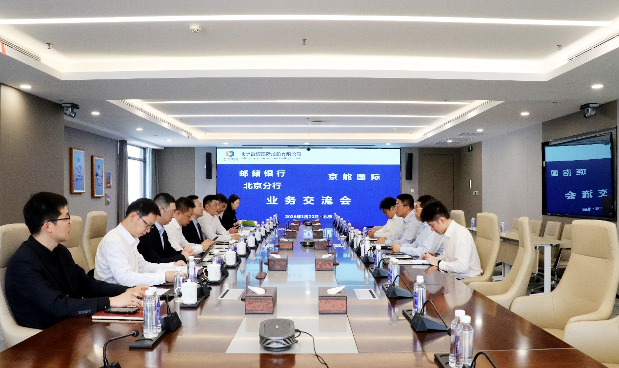 On March 25, Huang Hui, Vice President of Beijing Energy International, met in Beijing with Liu Jingyuan, Vice President of Postal Savings Bank of China Beijing Branch, and his delegation. The two sides held in-depth discussions on financial cooperation in the clean energy sector and advancing the green energy industry.